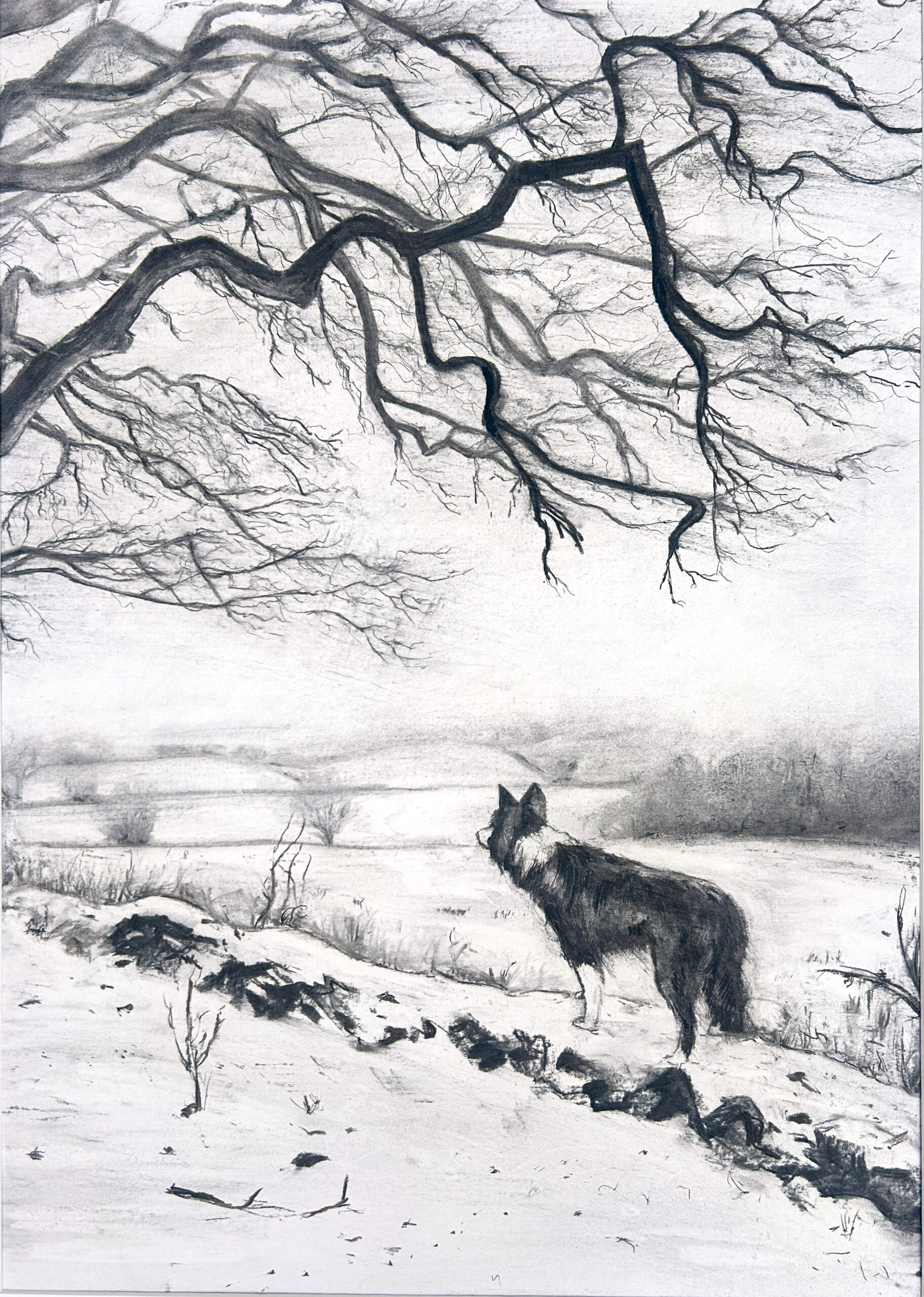 Charcoal drawing on paper mounted on Canvas (unstretched)